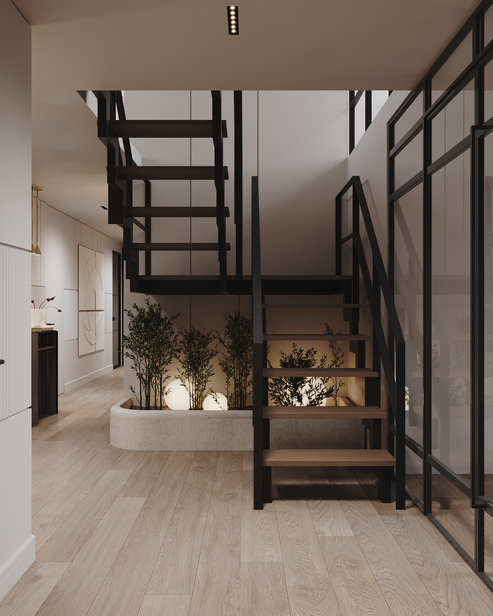 The apartment comes with 4 parking spaces, occupies the 4th floor, 5th floor and an exclusive rooftop terrace.